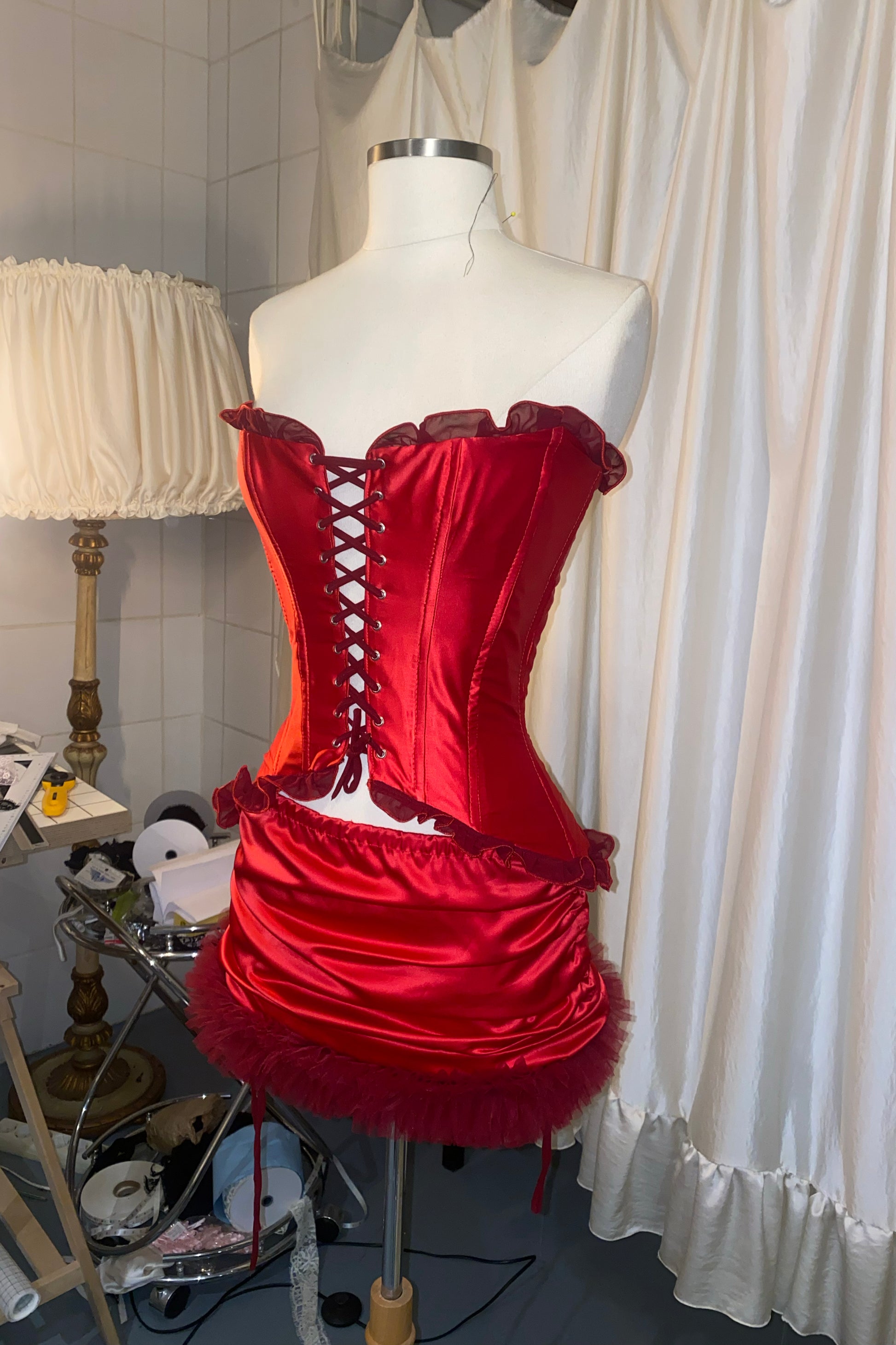 Designed with adjustable side bows, you can customize the length to wear it slightly shorter or a bit longer for the perfect fit. Style it with the Red Valentina Corset for a complete, festive look, or pair it with an oversized sweater for a more relaxed, casual vibe.